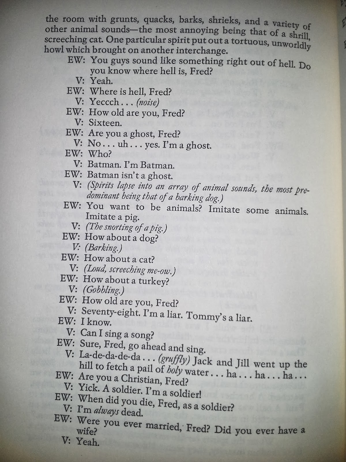 That page contained a partial transcript from a recording of demonologist Ed Warren having a conversation with voices allegedly belonging to multiple demons.